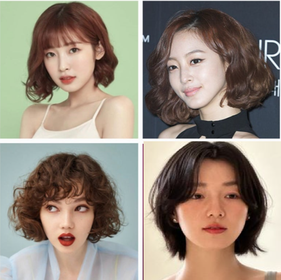 - 각진 얼굴형은 웨이브 펌이나 보브컷으로 부드러운 인상을 주는 것이 포인트입니다.