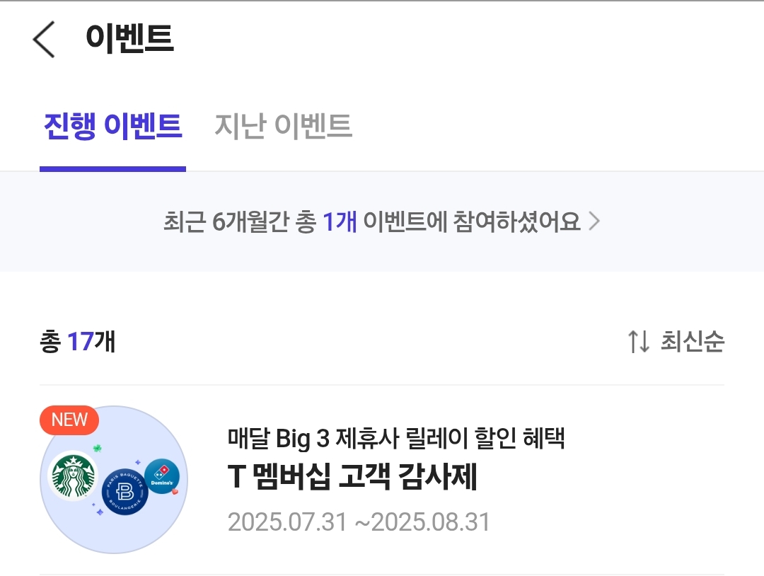 현재(2025년 8월 기준) 이벤트가 T멤버십 앱을 통해 진행 중입니다.