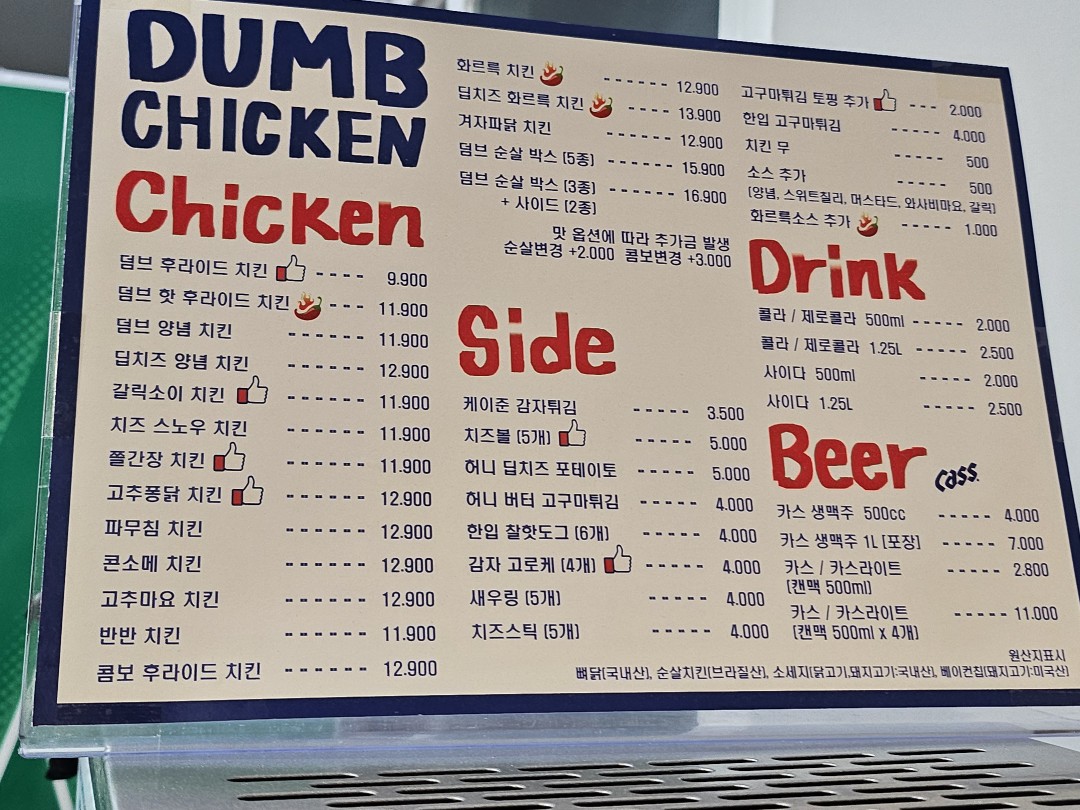 먼저 가격부터 말씀드리자면, 요즘 치킨 한 마리 가격이 2만 원을 훌쩍 넘는 경우가 많은데, 덤브치킨은 비교적 합리적인 가격대라 부담 없이 주문할 수 있었습니다. 게다가 양도 꽤 넉넉해서 2~3명이 충분히 먹을 수 있었어요.