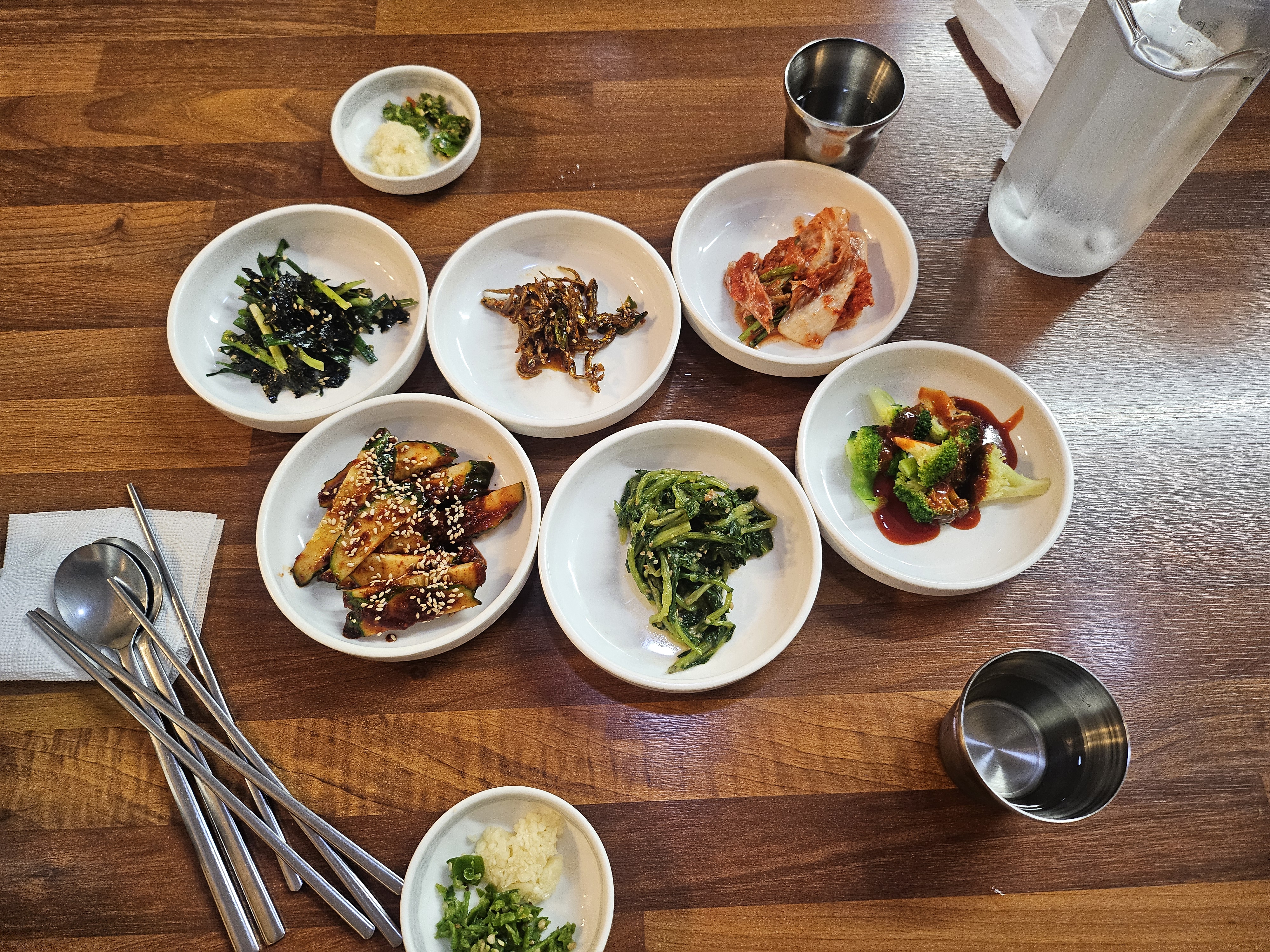 아삭한 배추김치, 시원한 오이김치, 매콤한 멸치볶음에 브로콜리까지—단순하지만 하나하나 밥도둑이었어요. 특히 국물과 김치를 함께 먹으면 감칠맛이 배가 되어서 숟가락을 멈출 수 없었습니다.