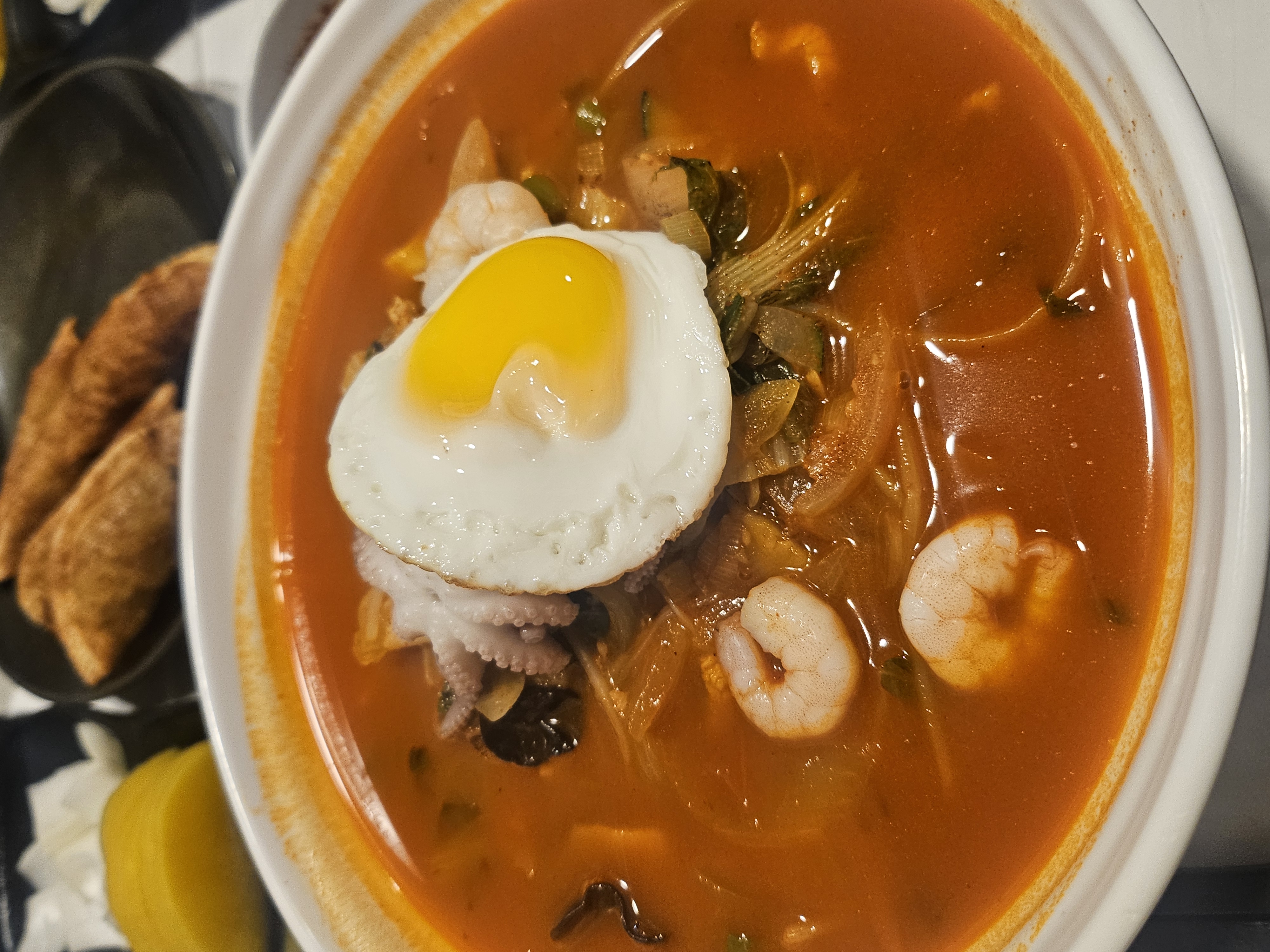 삼성짬뽕은 이름처럼 ‘삼(三)’ 가지의 풍성함을 느낄 수 있었습니다. 오징어, 홍합, 새우 등 신선한 해산물이 듬뿍 들어가고, 계란을 띄워줘 국물이 훨씬 부드럽고 깊은 맛이 났어요.