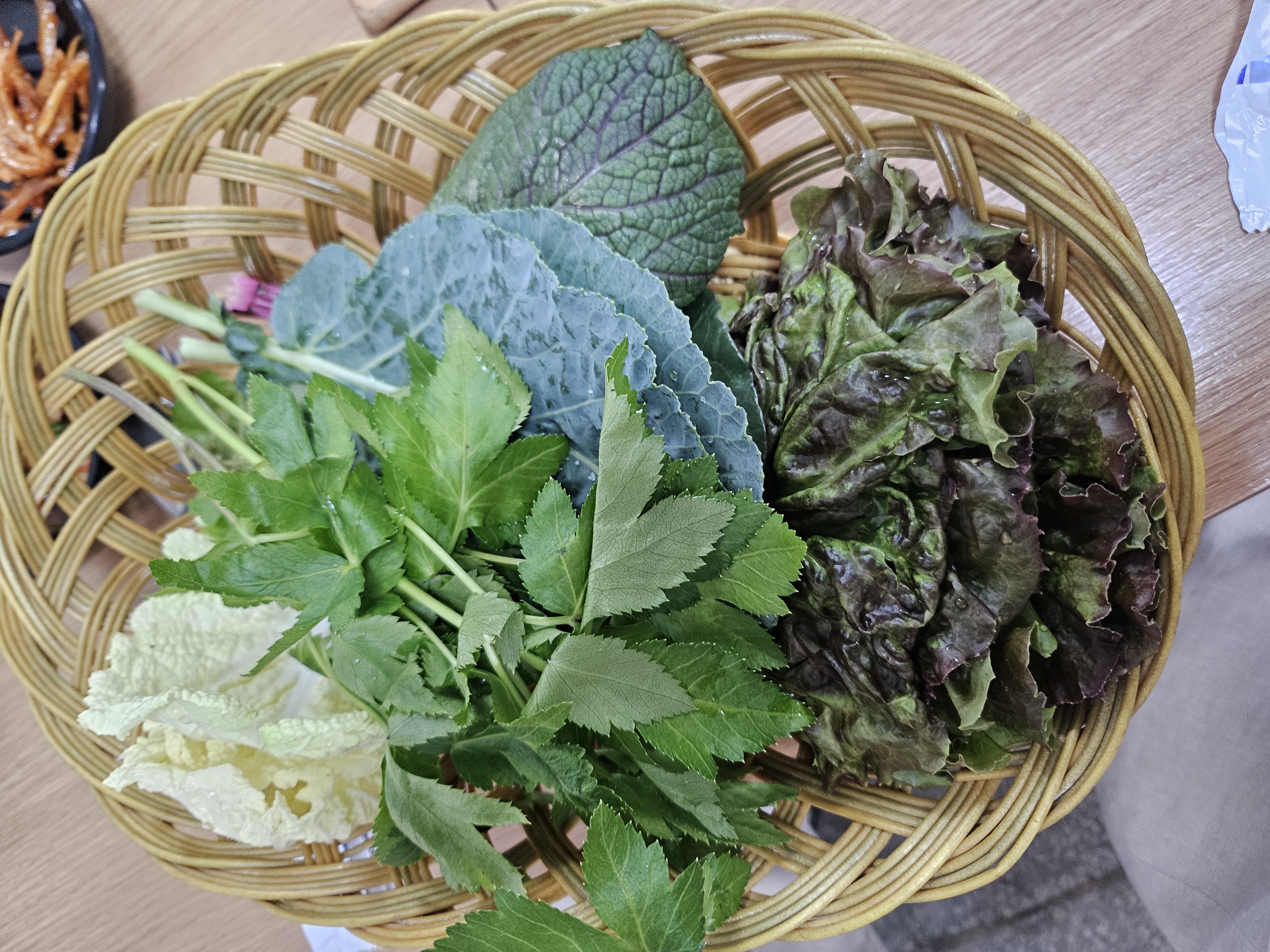 함께 나온 쌈야채는 정말 신선했습니다. 상추, 깻잎, 쌈채소 모두 초록빛이 살아있어 첫눈에 반할 정도였죠.