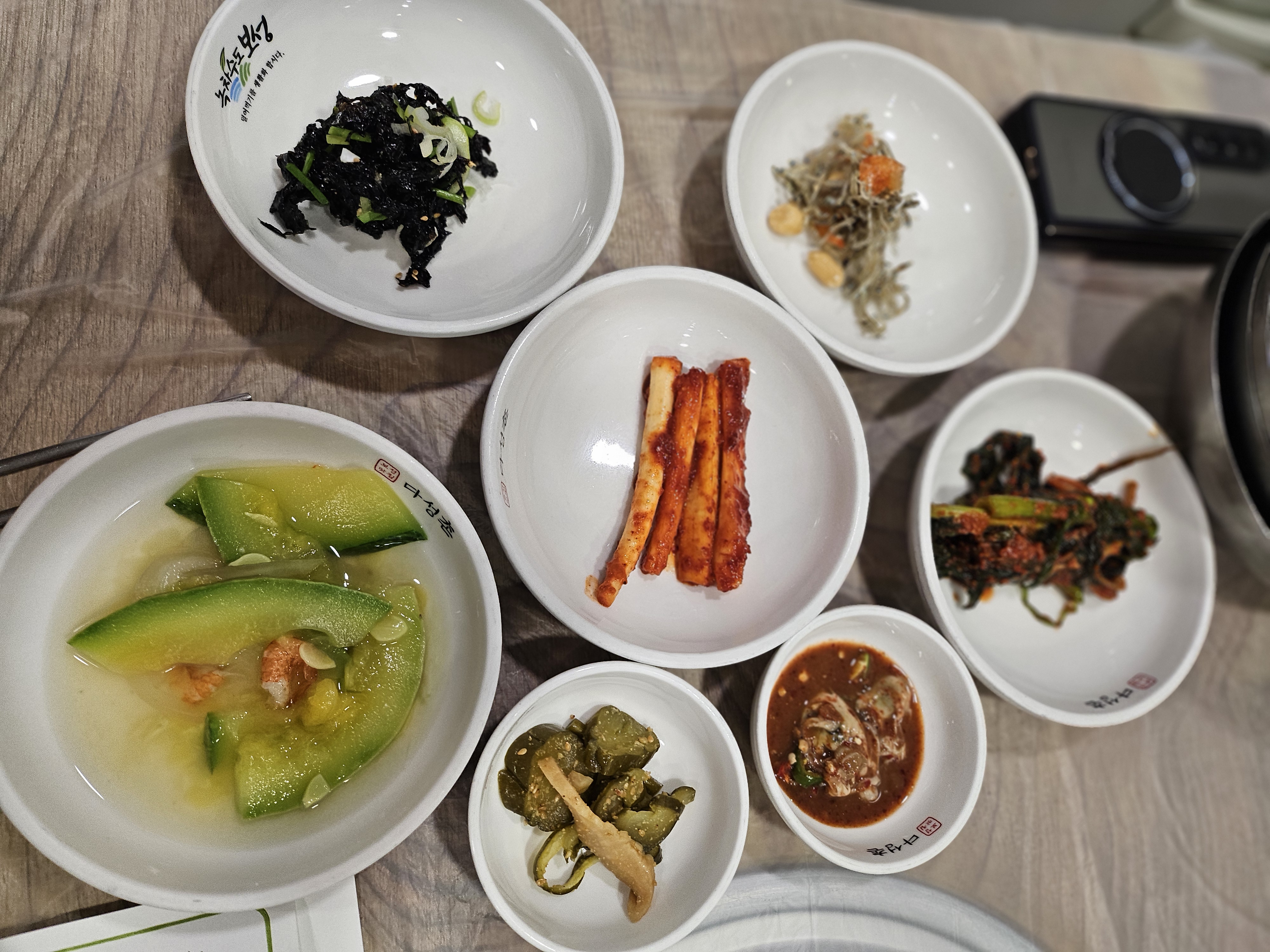 자리에 앉자마자 한상 가득 차려지는 반찬들을 보고