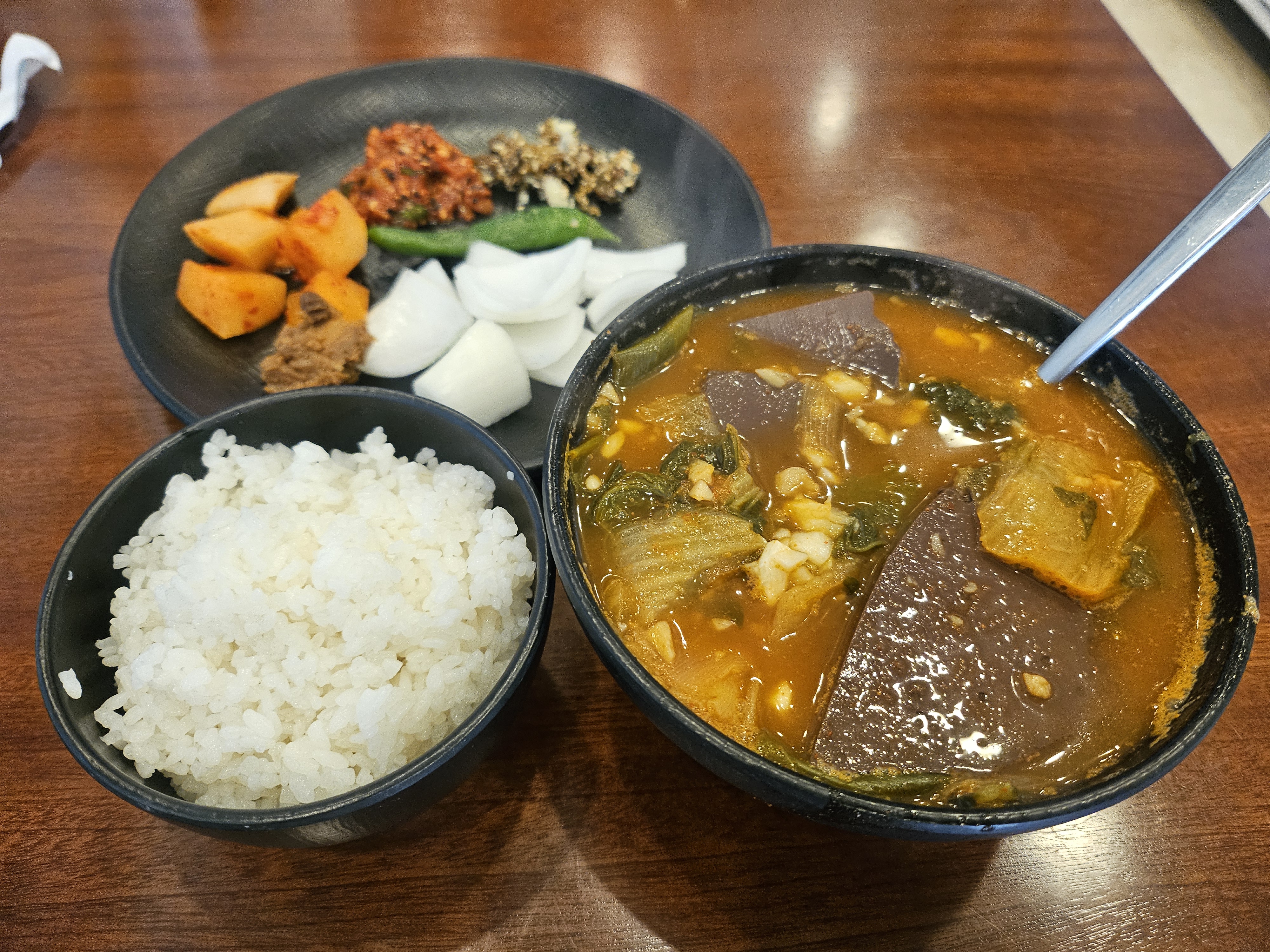 오래 끓인 진한 국물과 부드러운 선지가 일품이에요.