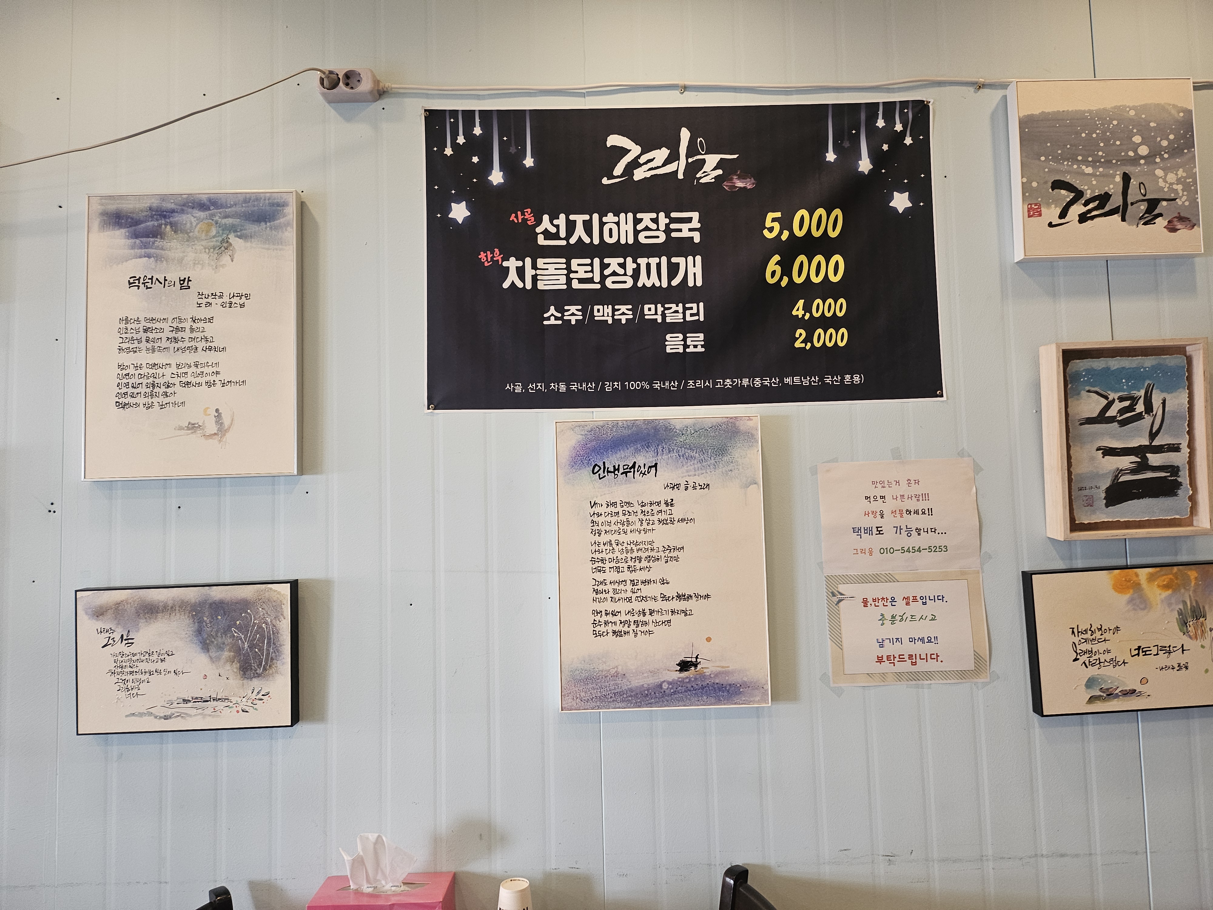 그런데 ‘그리움’의 선지국은 단돈 5,000원이에요.
