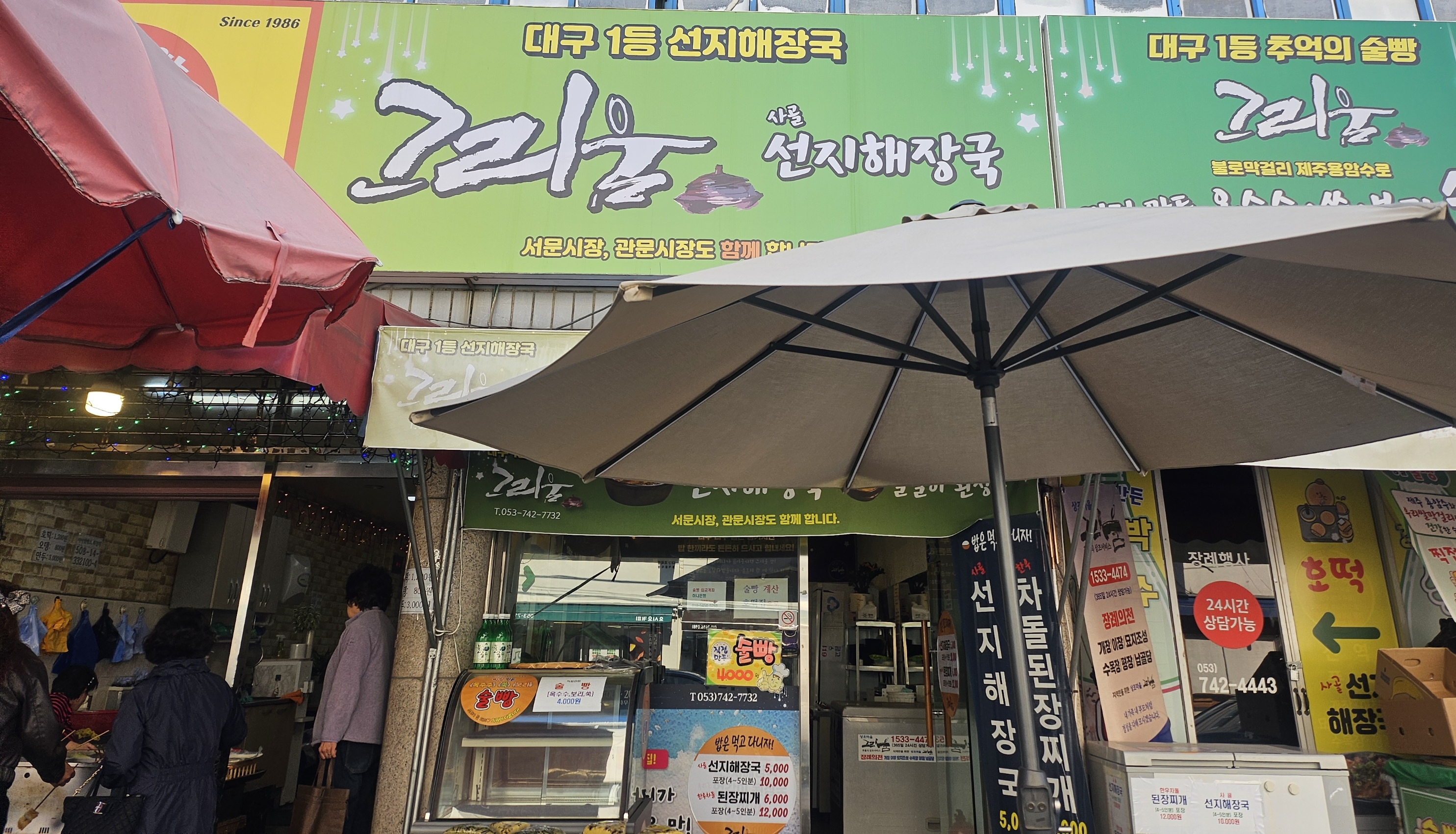 대구 동구시장 맛집 ‘그리움’. 돌아가신 어머니의 손맛을 그대로 지켜온 선지국집으로, 단돈 5천 원에 진하고 구수한 국물을 맛볼 수 있습니다. 포장은 만 원에 4인분 가능! 대구에서 진짜 선지국 찾는다면 ‘그리움’을 추천합니다.